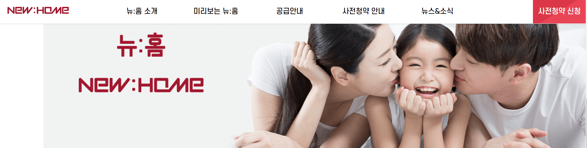 2. '뉴홈' 홈페이지 메인화면에서 오른쪽 상단에 빨간색 '사전청약' 버튼을 누릅니다.