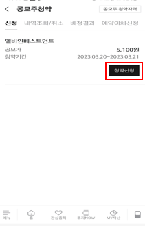 3. 공모주 청약상세 내용 및 증거금 확인 -> 청약신청 버튼 클릭