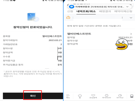 청약신청을 하면 위와 같이 증권사에서 카톡메시지로도 알림이 옵니다.