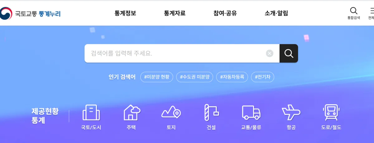 미분양률을 확인하려면 아래 홈페이지에 접속하여 검색창에 '미분양 현황'을 검색하면 바로 확인을 할 수 있습니다.