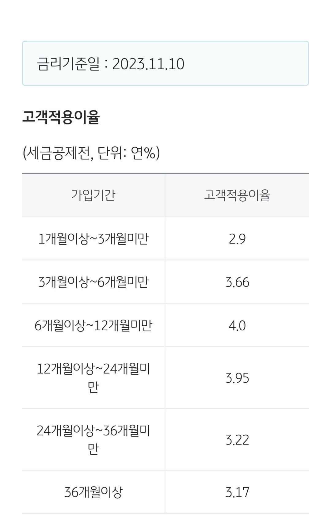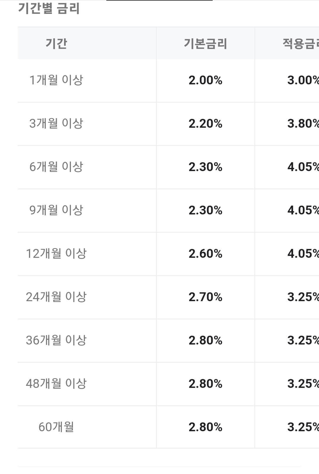 - 가입기간 : 1개월 이상부터 최대 3년까지 가입이 가능하며,