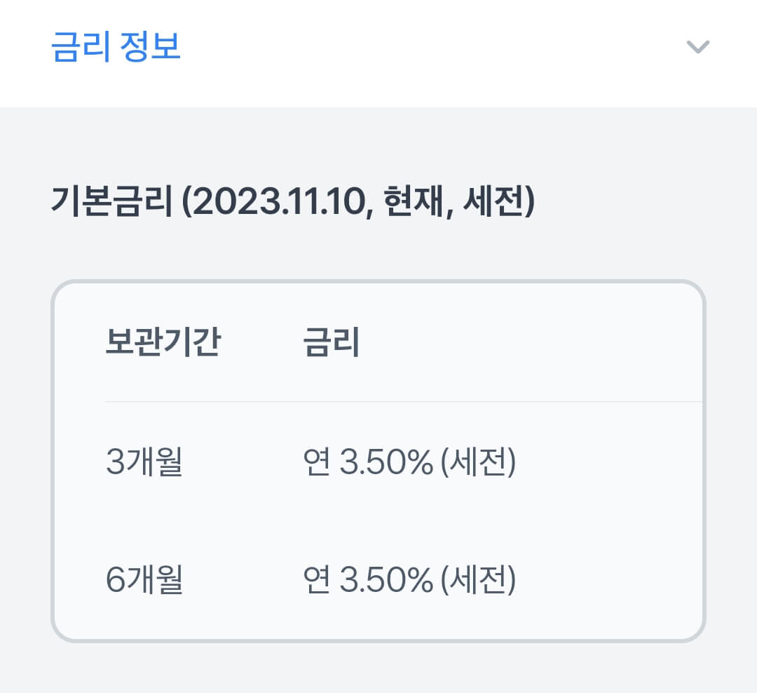 토스뱅크에서는 돈을 예치하면 이자를 먼저 받을 수 있는 정기 예금 상품이 있습니다. 연 최고 3.5%의 금리를 제공하는 상품입니다. 가입기간은 3개월 또는 6개월 단위로만 가입이 가능합니다.
