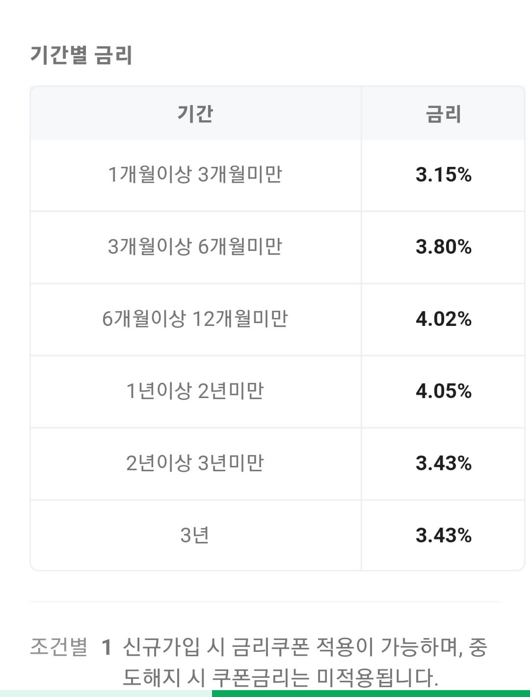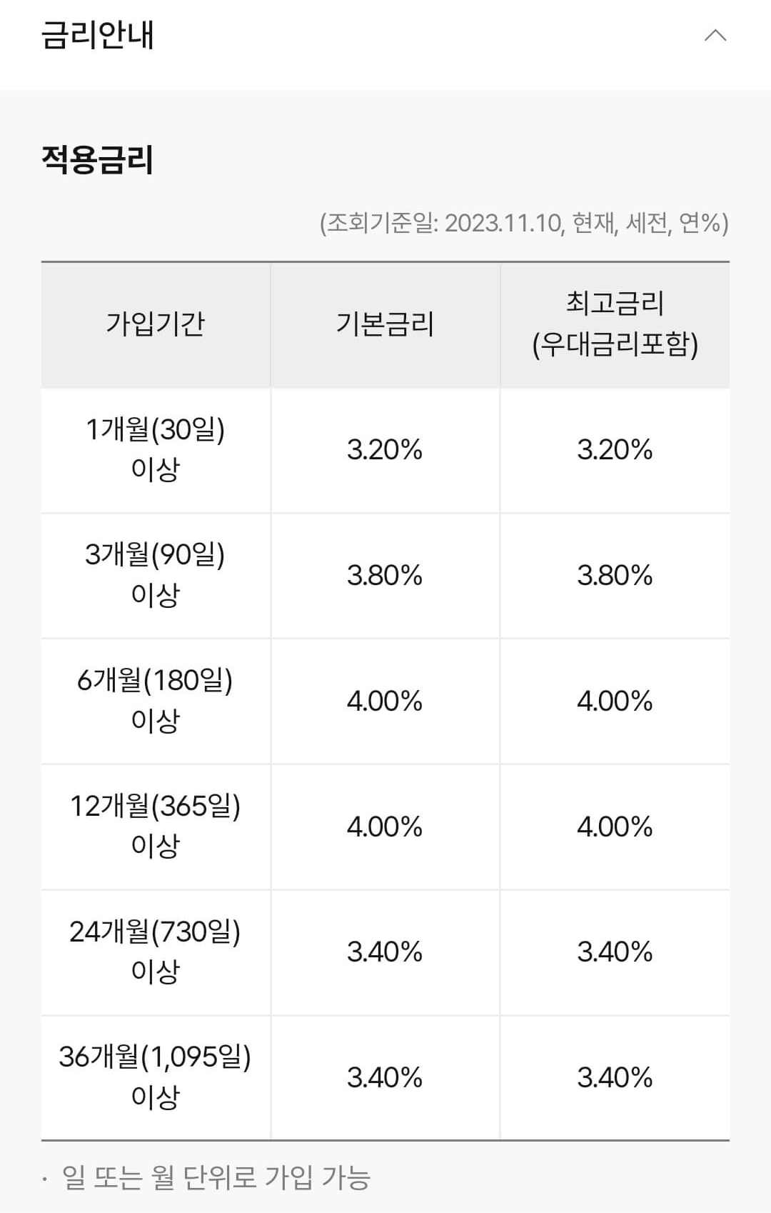 - 가입기간 : 1개월 이상부터 최대 3년까지 가입이 가능하며,